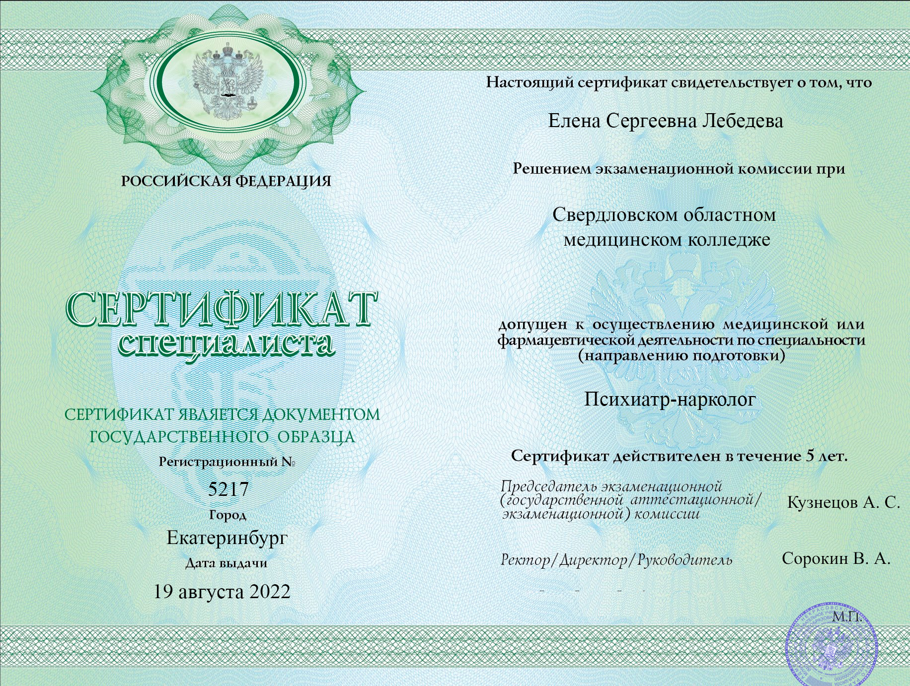 Елена Сергеевна Лебедева врач нарколог клиники доктора Стукаловой в Изобильном
